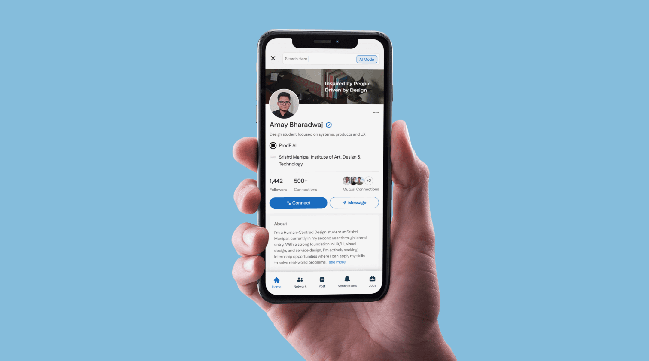 “Amay’s work consistently blends conceptual clarity with executional discipline. His strength lies in grounding his UX design in deep user research, mapping intuitive journeys, and producing clear, accessible interfaces. What sets him apart is his refined visual sensibility and ability to communicate ideas through strong narrative and layout decisions. He brings precision, energy, and genuine respect for the design process.”
