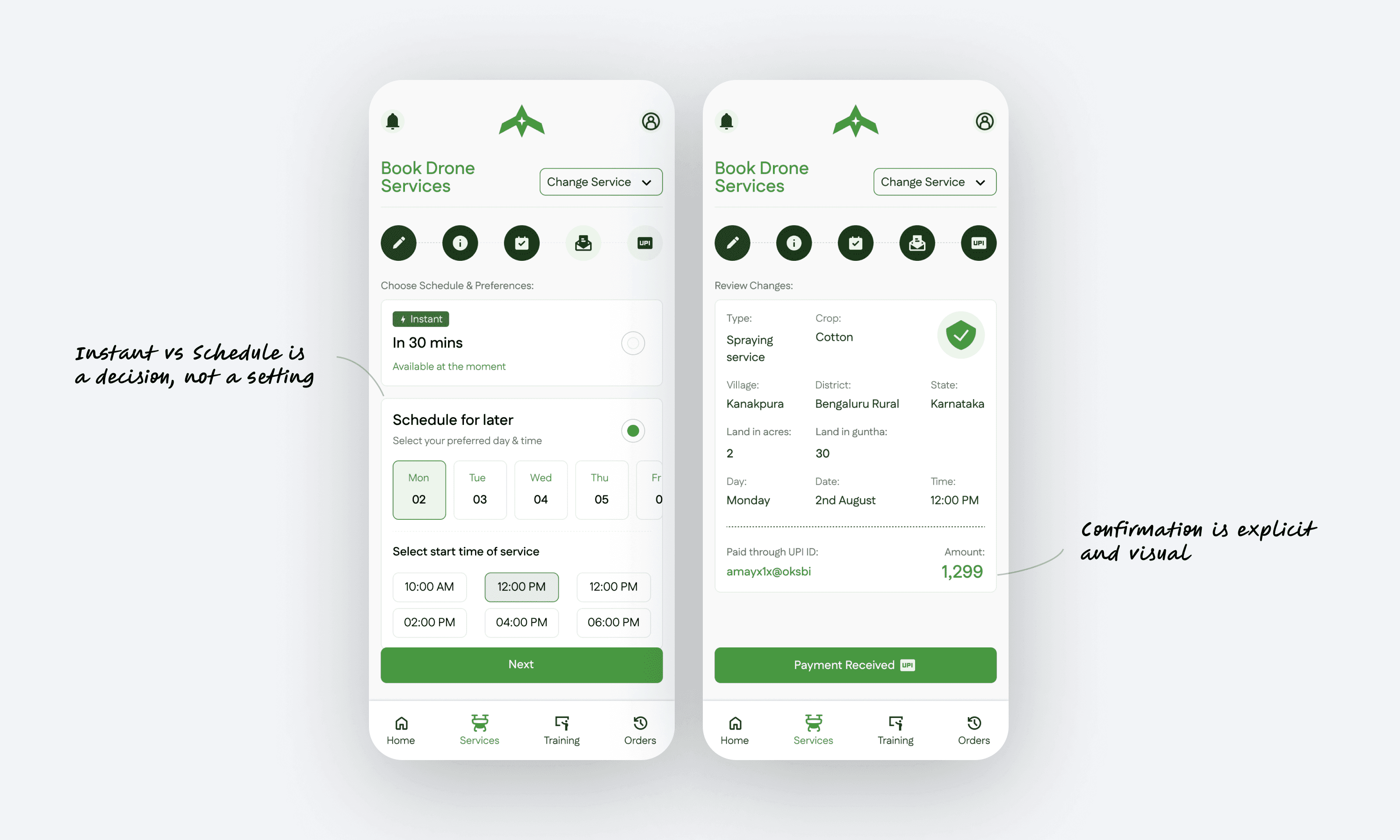 How do you make booking a drone farm service feel as simple as booking a slot?