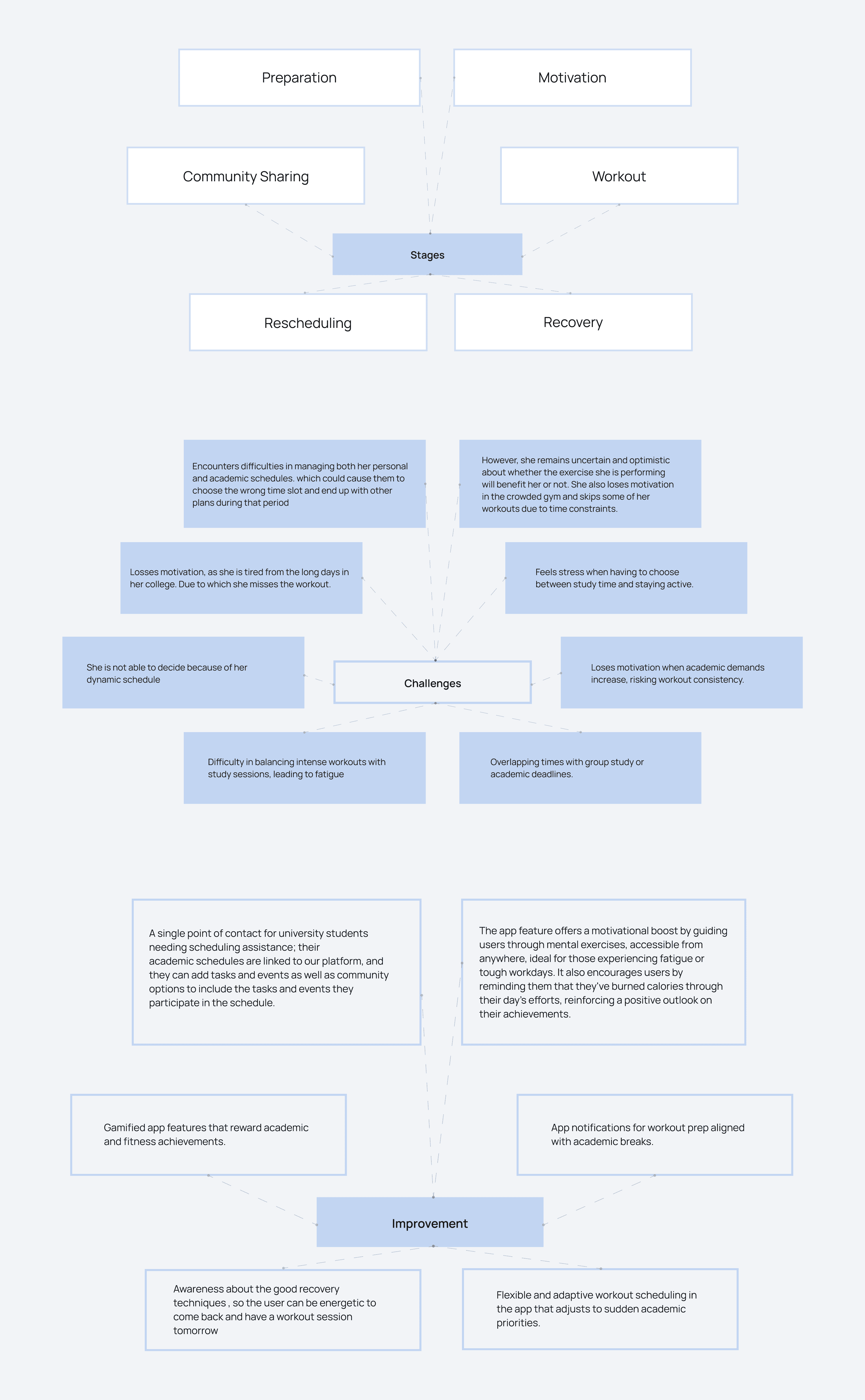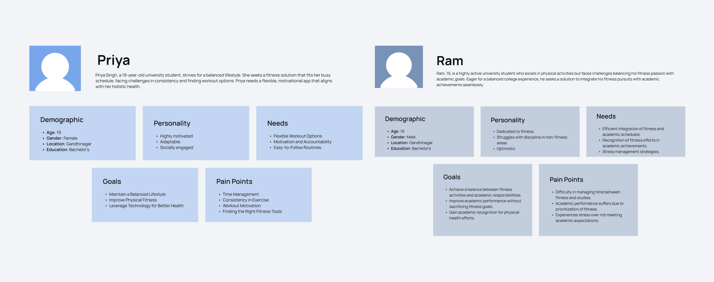 Turned scattered behaviours into clear user archetypes, so every feature decision had a real student or trainer in mind. Helped keep the product focused instead of feature-heavy