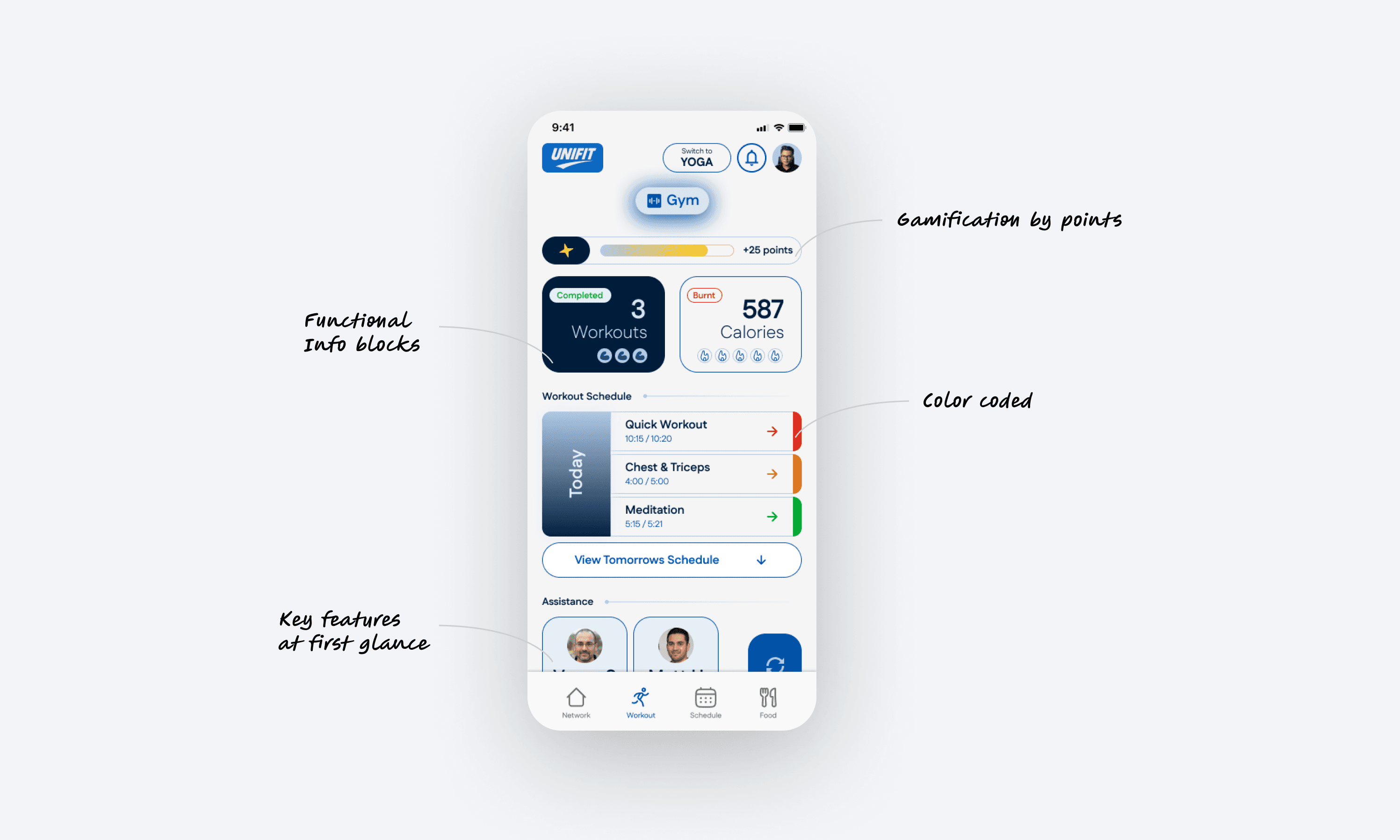 What makes Unifit different is the merge of academics and fitness into a single plan. The schedule is the product, workouts and classes are just the entries. That shift made the concept feel believable.