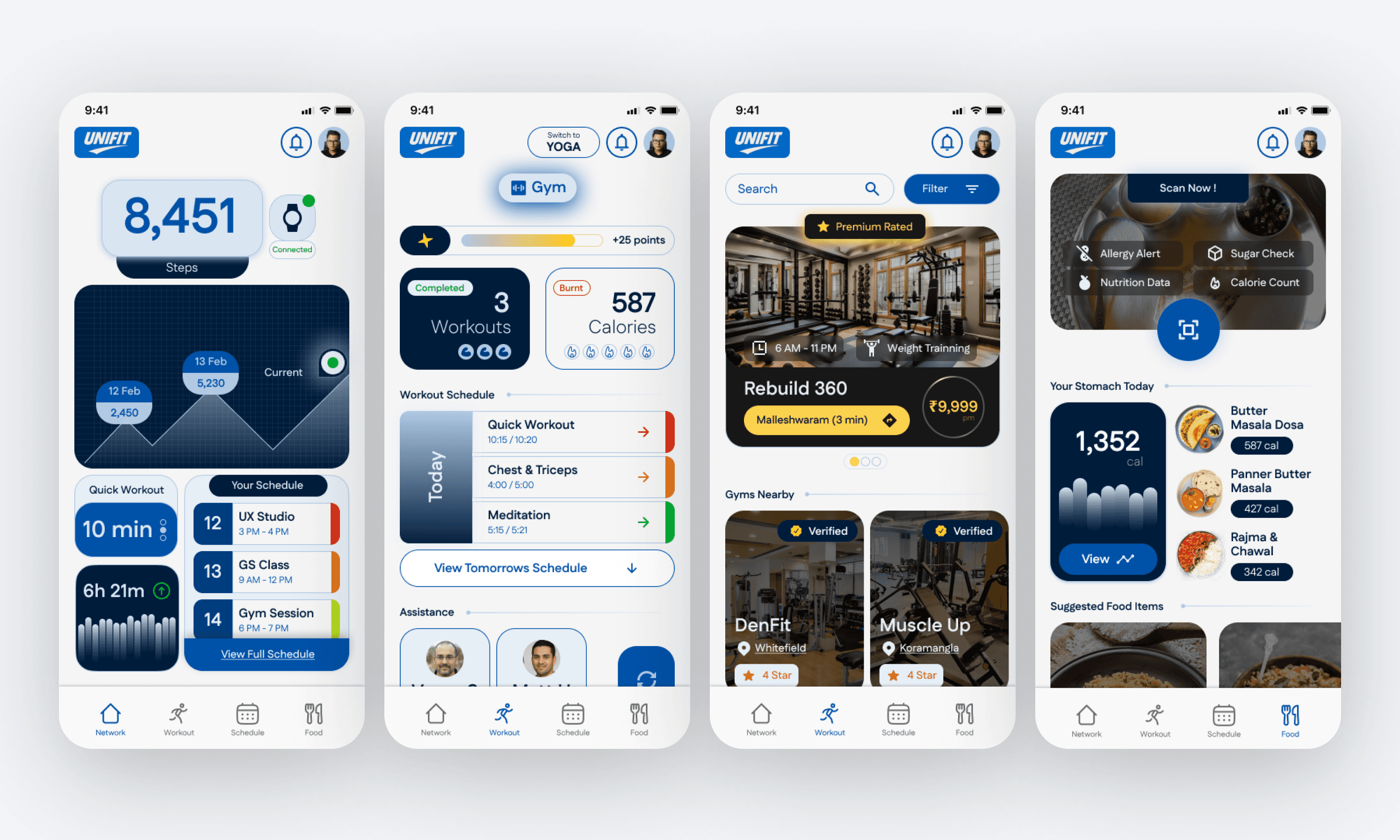 Unifit is a student focused fitness concept I designed across two iterations: first at UID 2024, then refined at Srishti 2025 with stronger flows, states, and visual consistency.