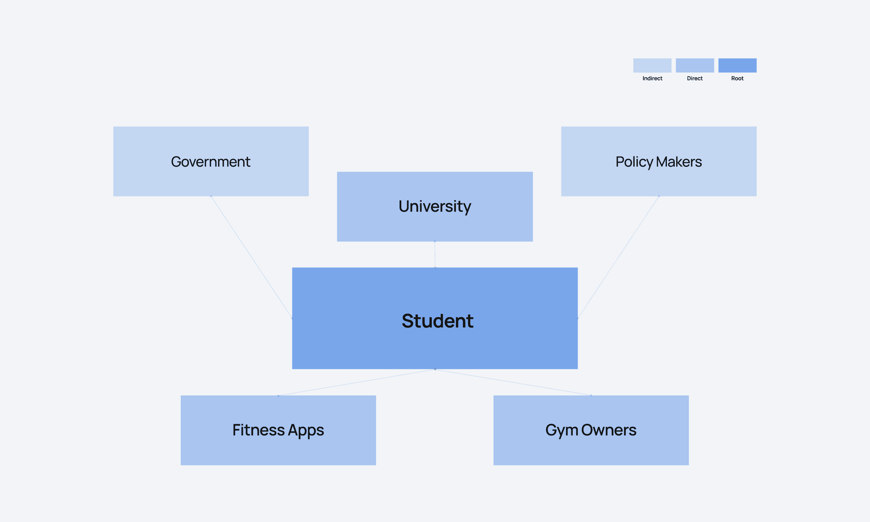 Clarified who shapes the experience beyond the user: trainers, gyms, peers, and platforms. Helped prioritise what needs coordination versus what can be self-serve.