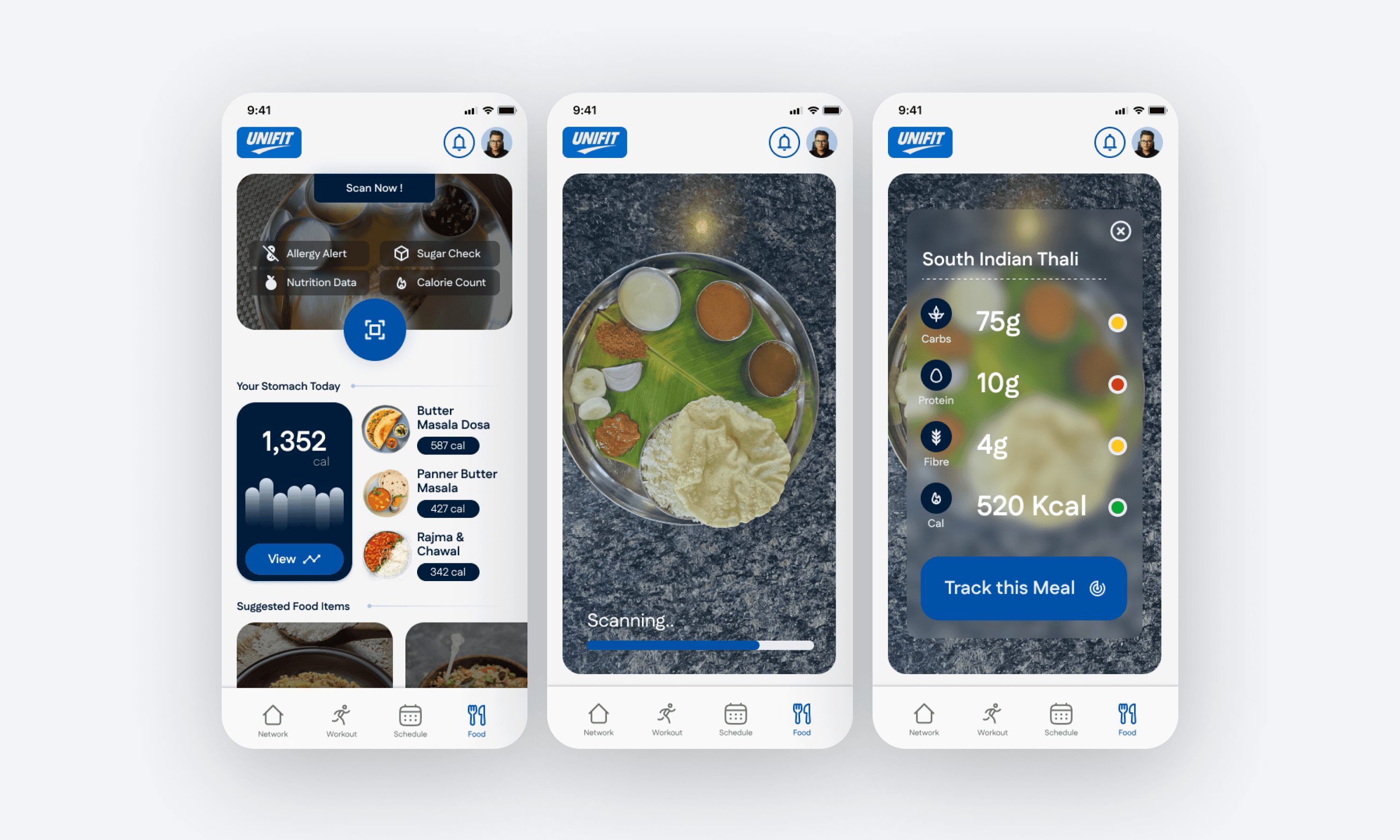 Academics, workouts, and food share the same interaction logic: cards, list blocks, and clear CTAs. The app feels like one system, not four separate modules stitched together